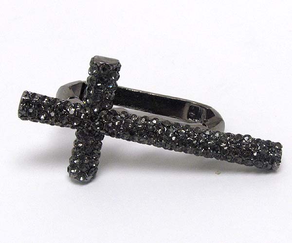 WHOLESALE CRYSTAL CROSS DUAL FINGER STRETCH RING 385842