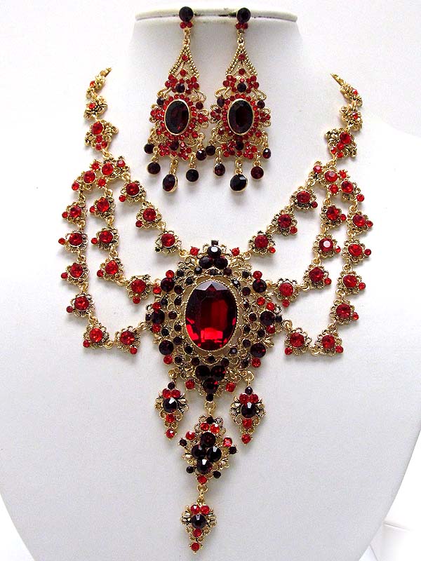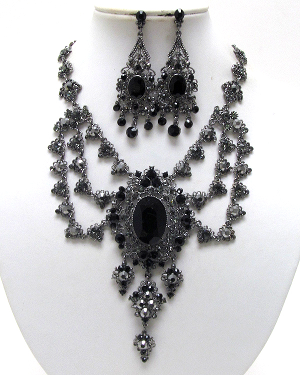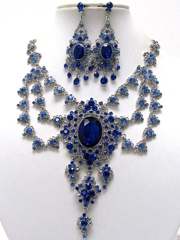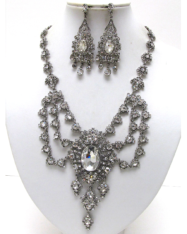 Luxury class victorian style austrian crystal hanging drop party necklace earring set