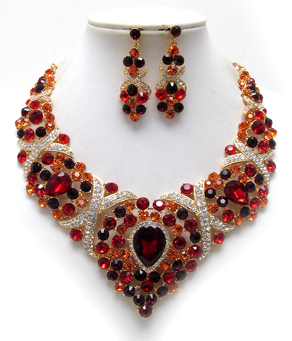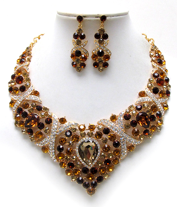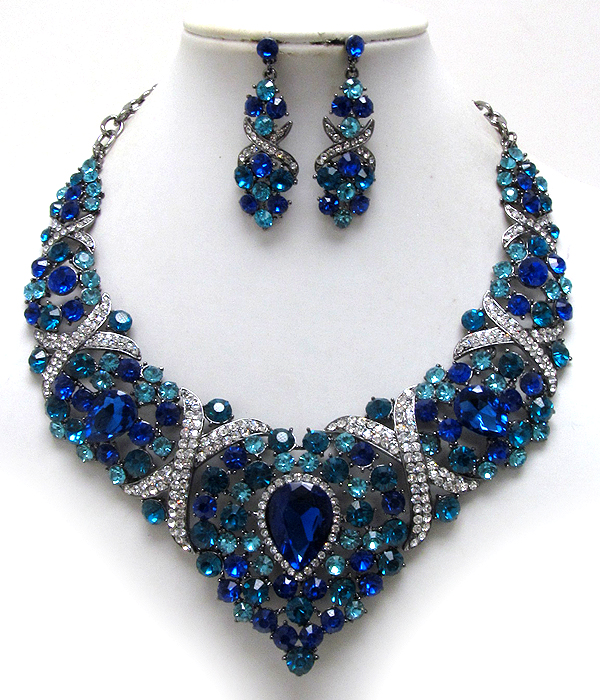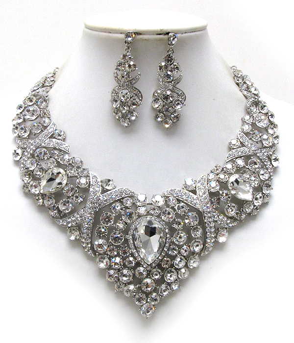 WHOLESALE LUXURY CLASS VICTORIAN STYLE AUSTRIAN CRYSTAL TEARDROP CENTER NECKLACE EARRING SET 385885