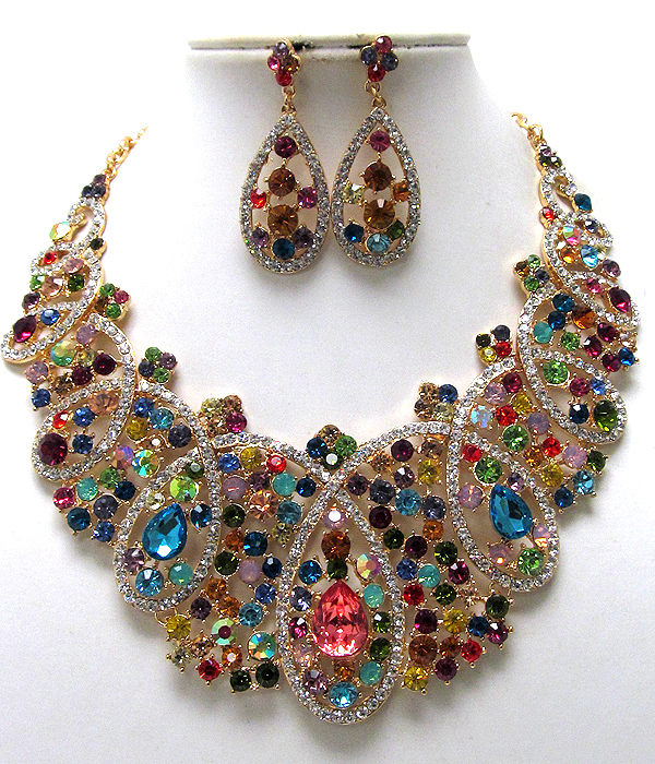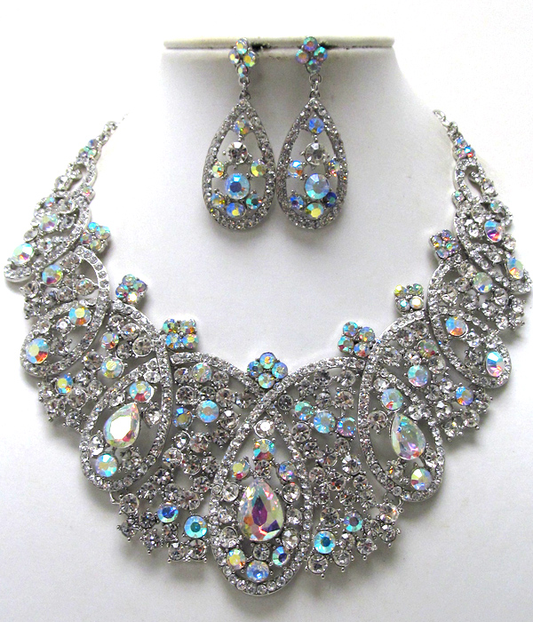 Luxury class victorian style austrian crystal wide flower necklace earring set