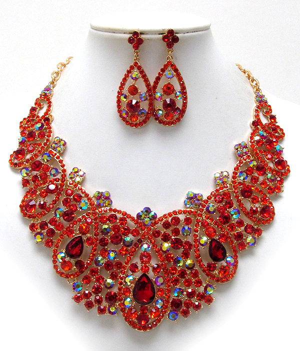 WHOLESALE LUXURY CLASS VICTORIAN STYLE AUSTRIAN CRYSTAL WIDE FLOWER NECKLACE EARRING SET 385893