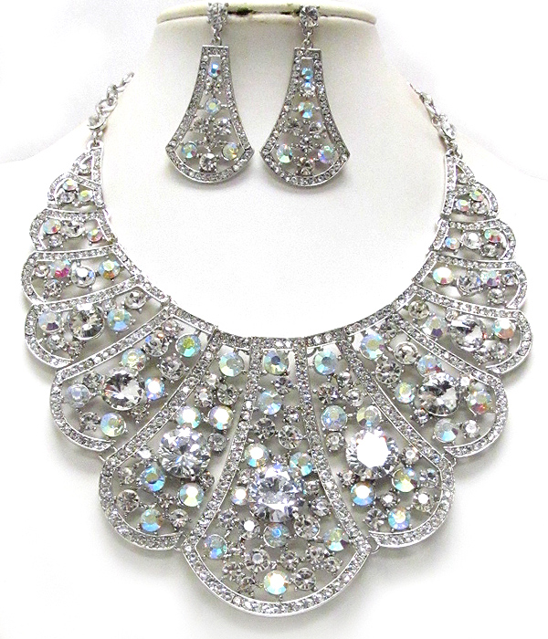 WHOLESALE LUXURY CLASS VICTORIAN STYLE AUSTRIAN CRYSTAL BUBLE BIB NECKLACE EARRING SET 385894