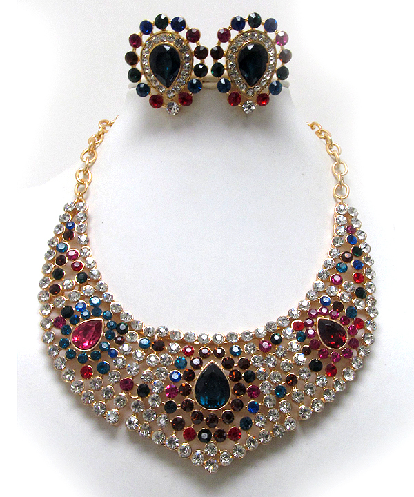 WHOLESALE LUXURY CLASS AUSTRIAN CRYSTAL SUD BIB STYLE NECKLACE AND CLIPON EARRING SET 385900