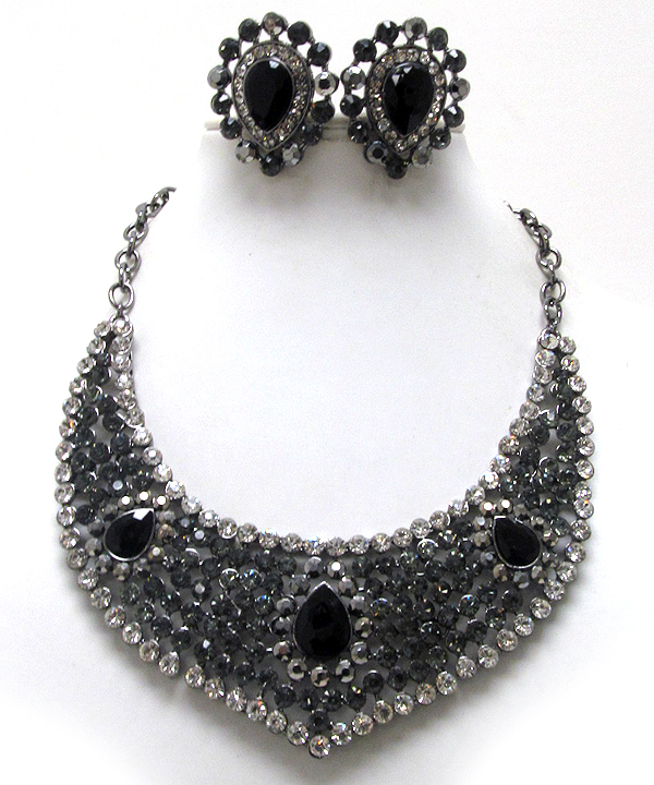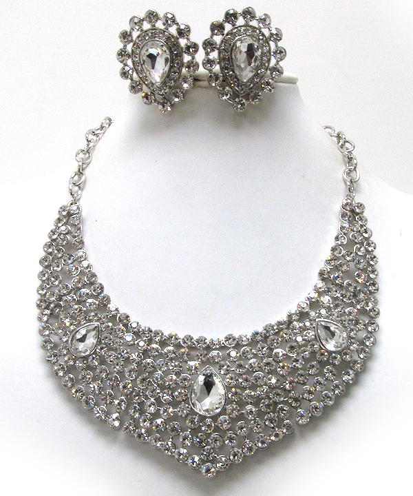Luxury class austrian crystal sud bib style necklace and clipon earring set