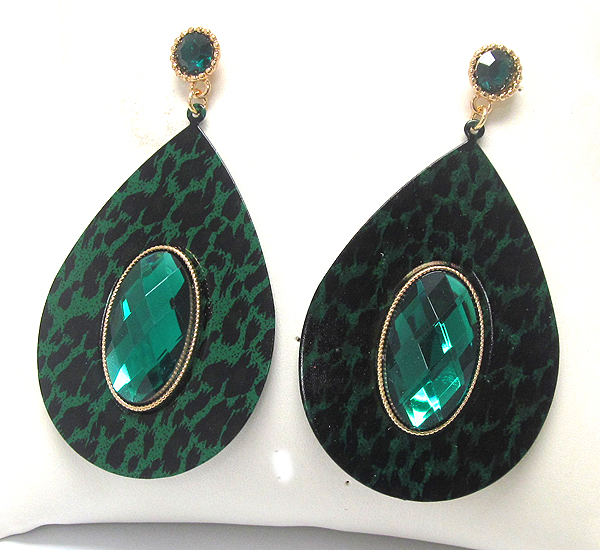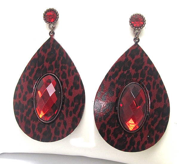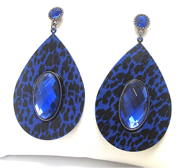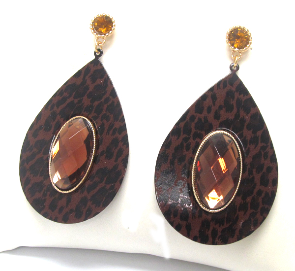 WHOLESALE METAL TEAR DROP ANIMAL PRINT AND ON CENTER OVAL CRYSTAL GLASS 386001