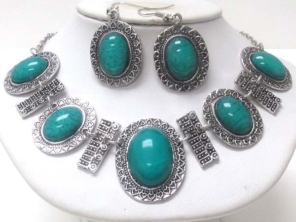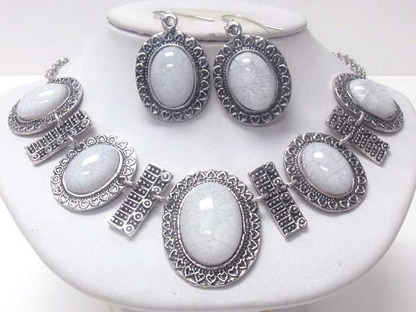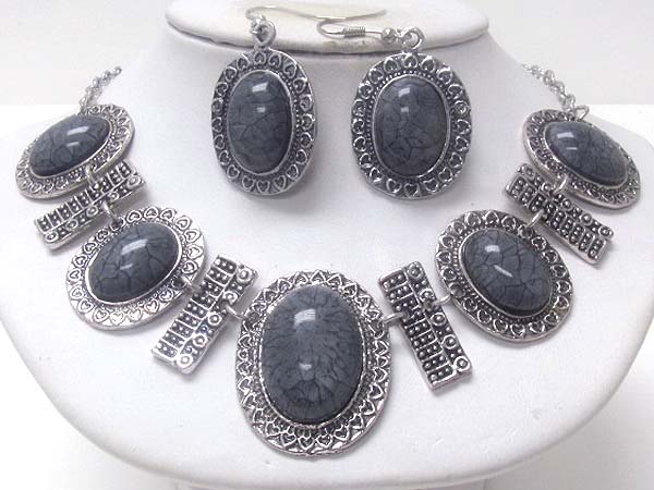 WHOLESALE MIXED OVAL AND METAL FILIGREE BAR LINK NECKLACE EARRING SET 386072