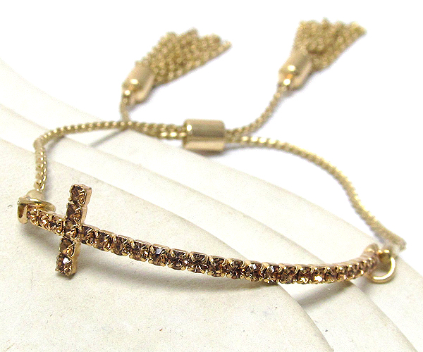 WHOLESALE CRYSTAL CROSS WITH CHAIN DANGLE ENDS AND METAL CORD FRIENDSHIP BRACELET 386308