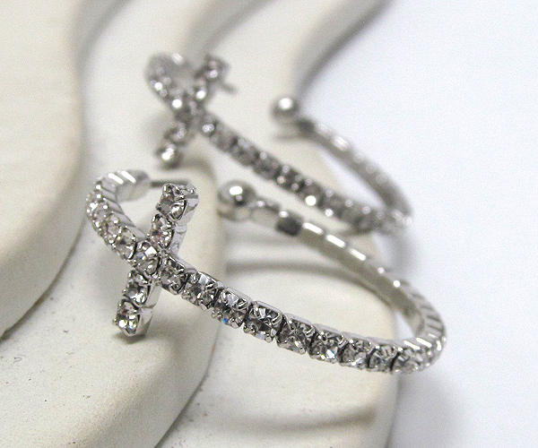 WHOLESALE CRYSTAL CROSS HOOP EARRING - HOOPS 386315