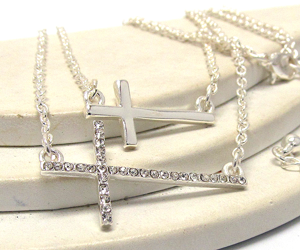 WHOLESALE CRYSTAL DOUBLE CROSS DROP CHAIN NECKLACE 386506