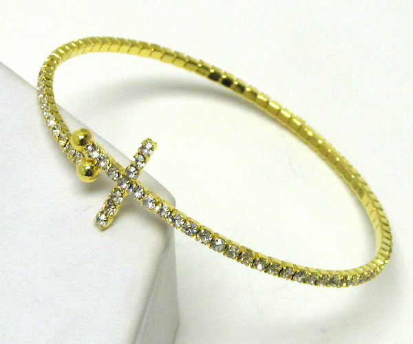Line rhinestone cross stretch bracelet