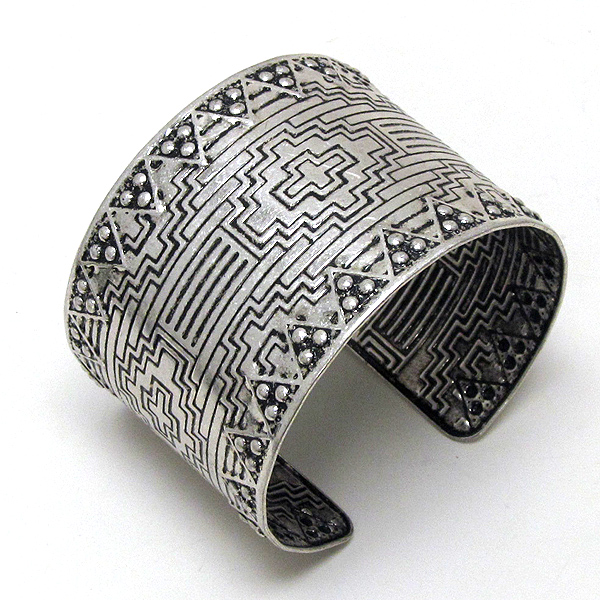 Azteca theme metal cross cuff bangle -western