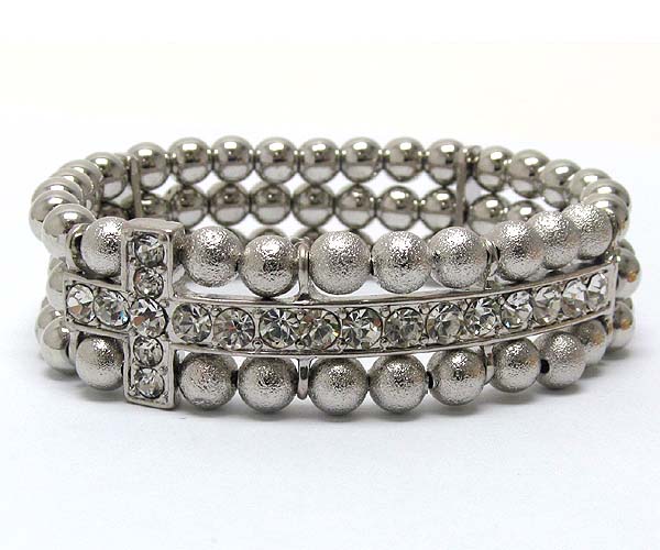 Crystal metal cross on center with multi sandy and plane metal balls on stretch barcelet