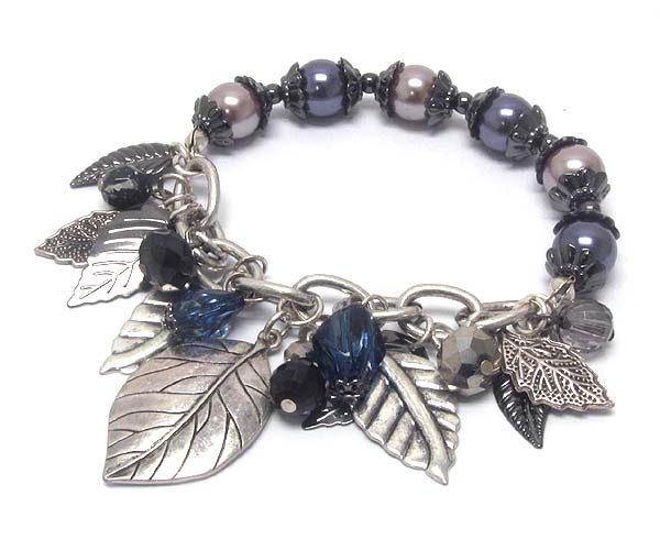 WHOLESALE MULTI METAL LEAF AND PEARL BEAD STRETCH BRACELET 387156