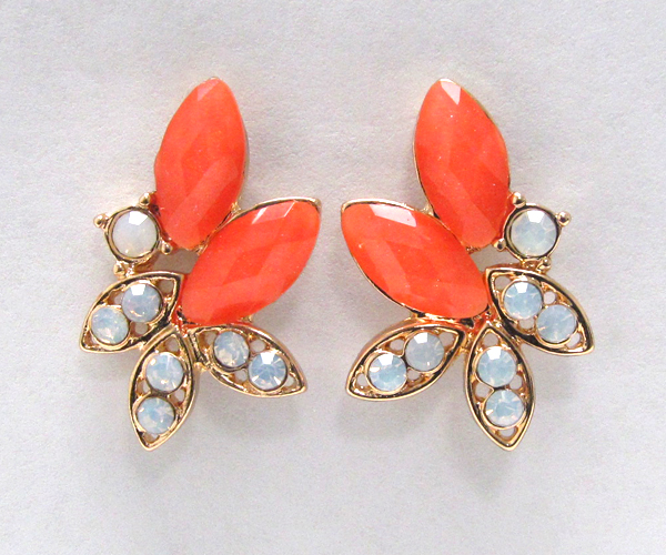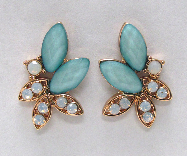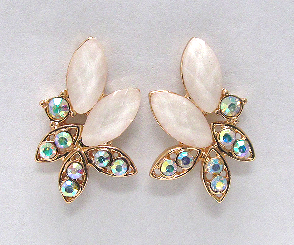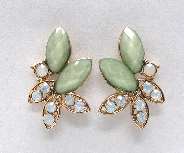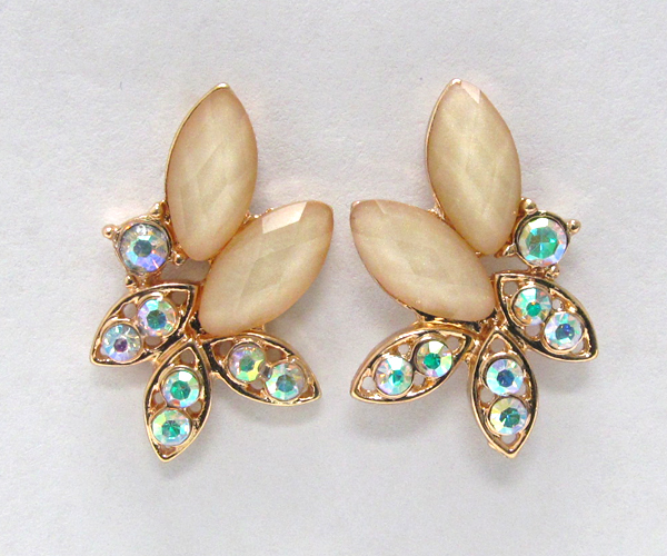Crystal metal with leafs glass stone stud earring