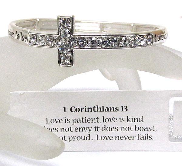 WHOLESALE CRYSTAL CROSS WITH BIBLE INSPIRATION MESSAGE STRETCH BRACELET 387232