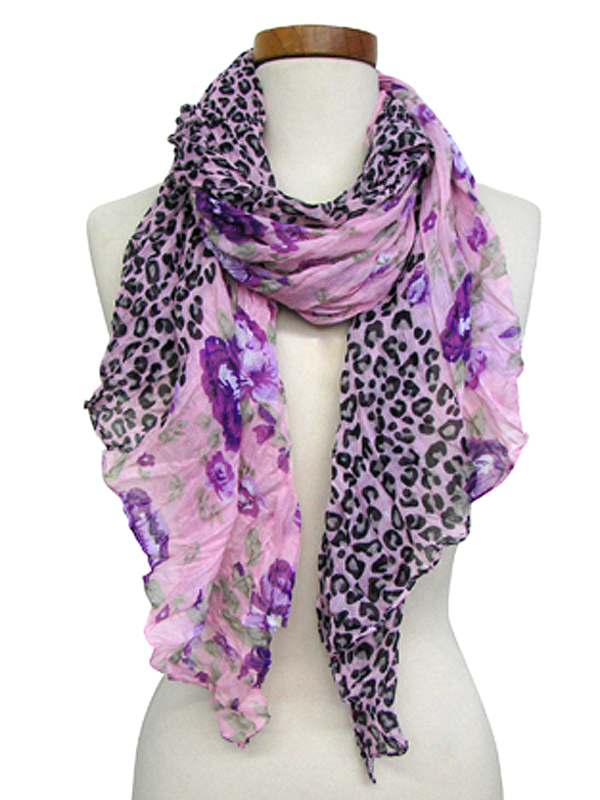 WHOLESALE 100% POLYESTER CRINKLE ROSE LEOPARD SCARF 387257