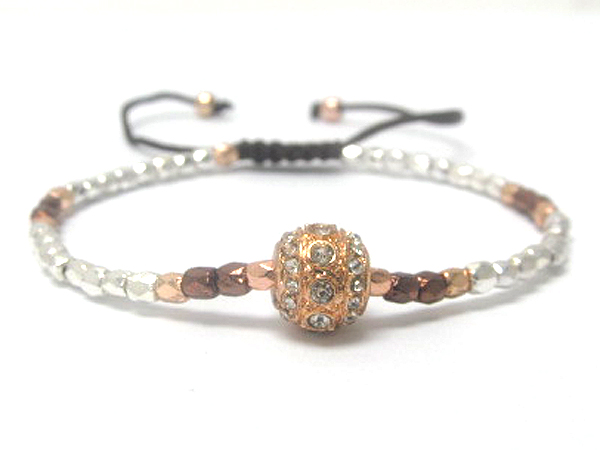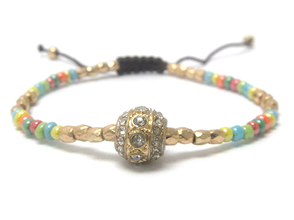Crystal cross and multi seed beads on braided yarn friendship bracelet