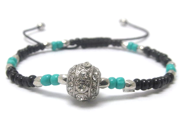 WHOLESALE CRYSTAL CROSS AND MULTI SEED BEADS ON BRAIDED YARN FRIENDSHIP BRACELET 387339