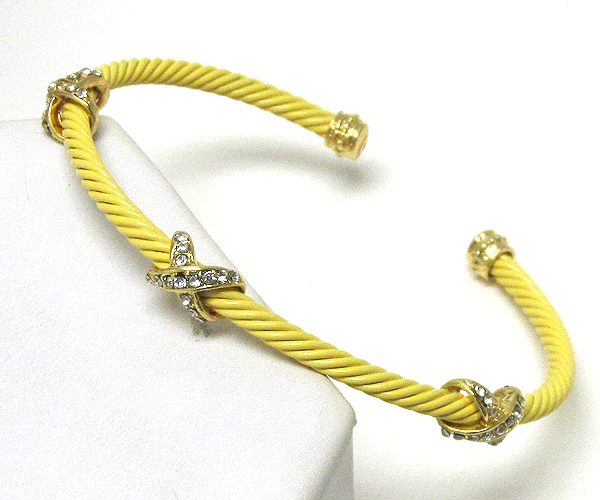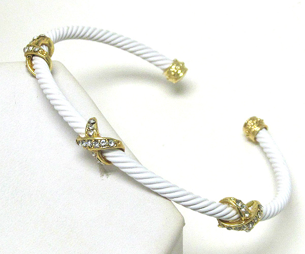 WHOLESALE THREE CRYSTAL X AND DESIGNER INSPIRED TWISTED METAL CABLE STRETCH BRACELET 387344