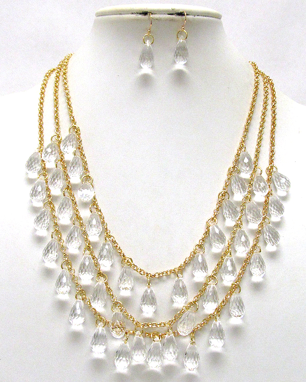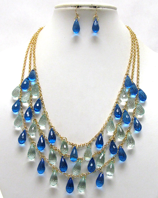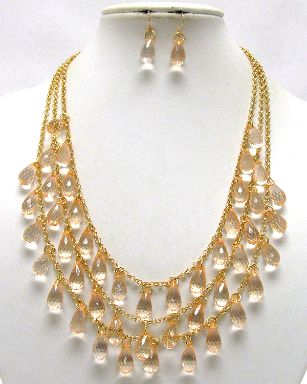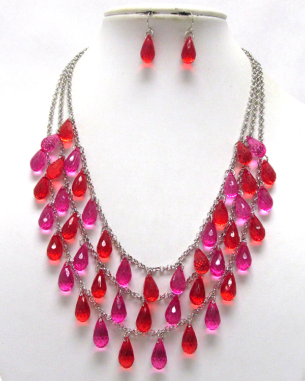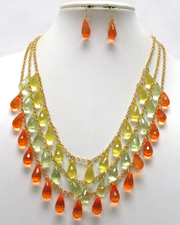 Three layer multi acryl tear drop chain necklace earring set