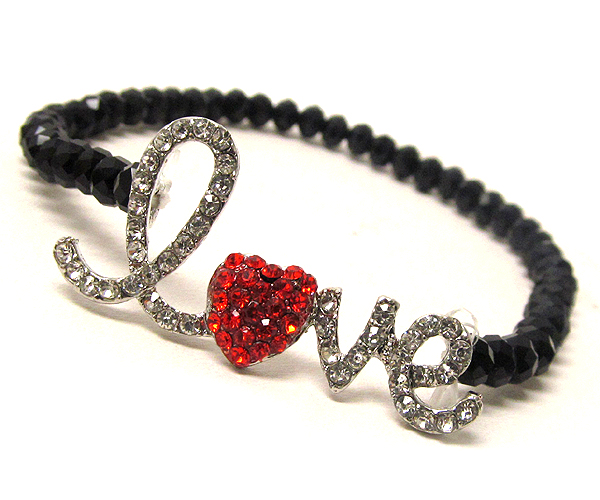 WHOLESALE CRYSTAL LOVE THEME AND HEART WITH CRYSTAL GLASS BEADS STRETCH BRACELET 387394