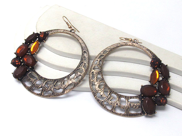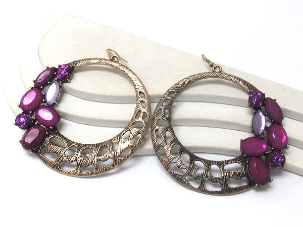 WHOLESALE MULTI ACRYLIC STONE AND METAL FILIGREE HOOP EARRING - HOOPS 387550
