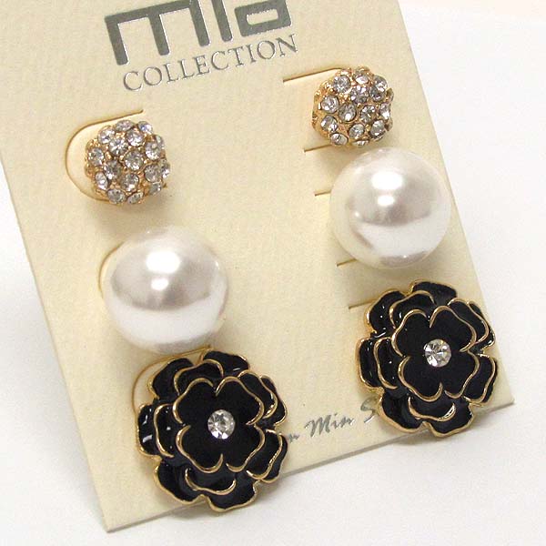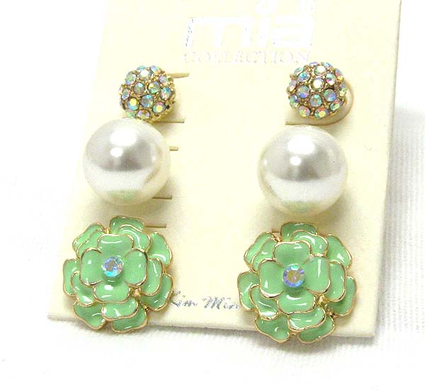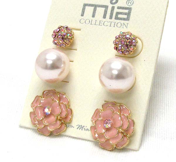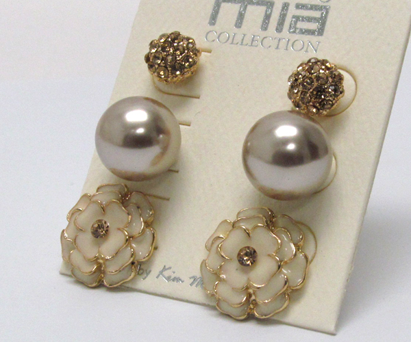 WHOLESALE CRYSTAL FLOWER PEAL BALL CRYSTAL FIRE BALL-THREE PAIR EARRING SET 387715