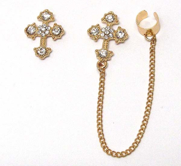 WHOLESALE CRYSTAL CROSS AND CHAIN LINK EARRING - EAR CUFF 387751