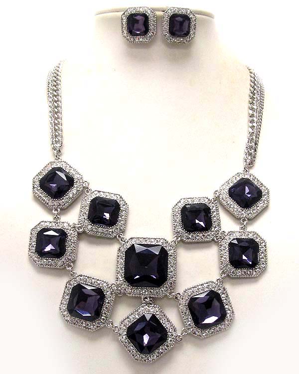 WHOLESALE LUXURY AUSTIRIAN CRYSTAL DECO SQUARE FACET GLASS STONE PARTY NECKLACE EARRING SET 387897
