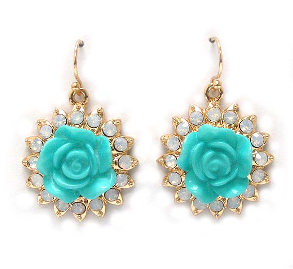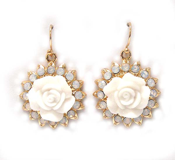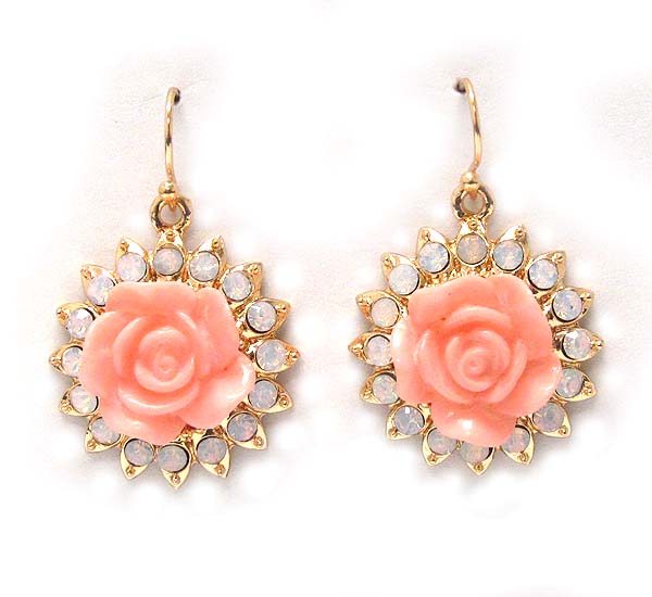 WHOLESALE ACRYL ROSE AND CRYSTAL DROP EARRING 387927