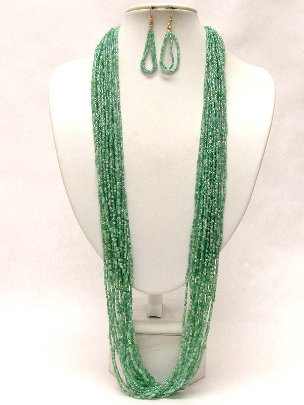 Multi layer seed beads drop long necklace earring set