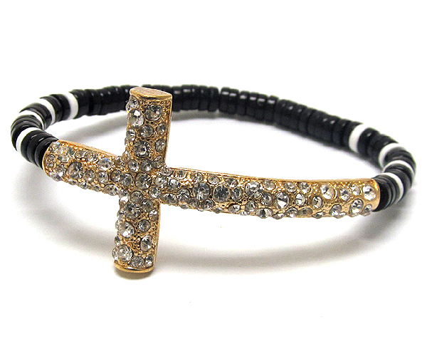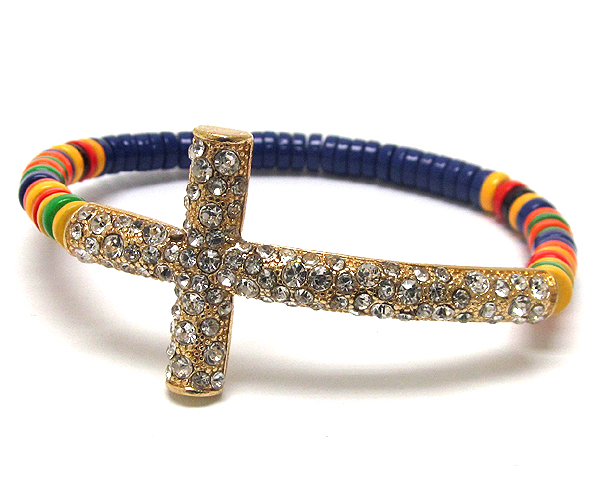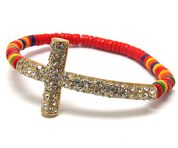 WHOLESALE CRYSTAL CROSS AND ACRYLIC SMALL DISK BEADS STRETCH BRACELET 387958
