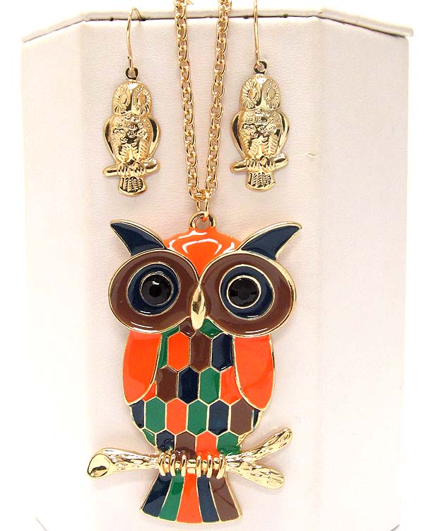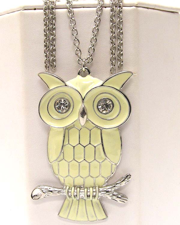 WHOLESALE CRYSTAL EYED LARGE EPOXY OWL AND LONG CHAIN NECKLACE 387978
