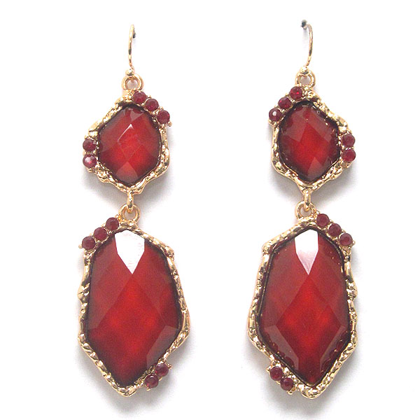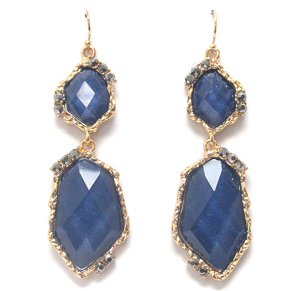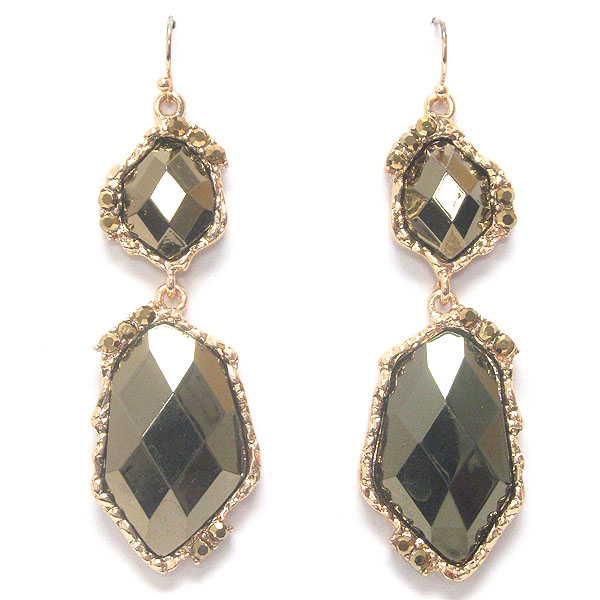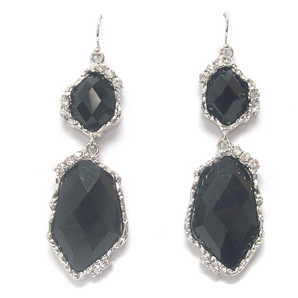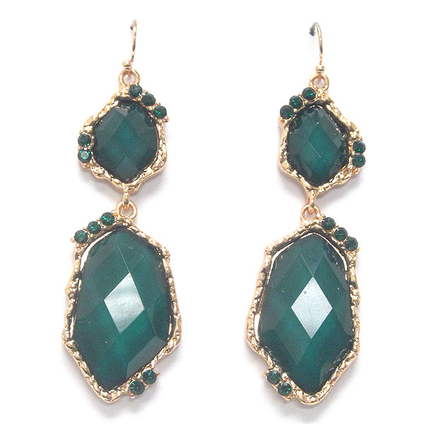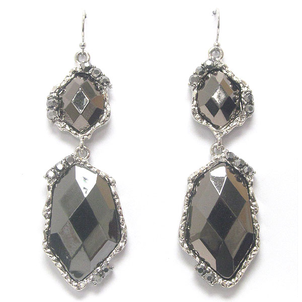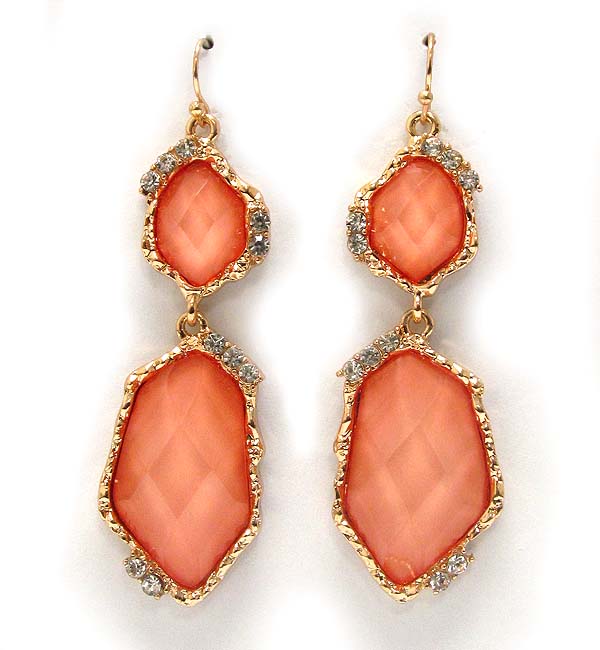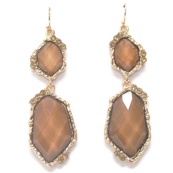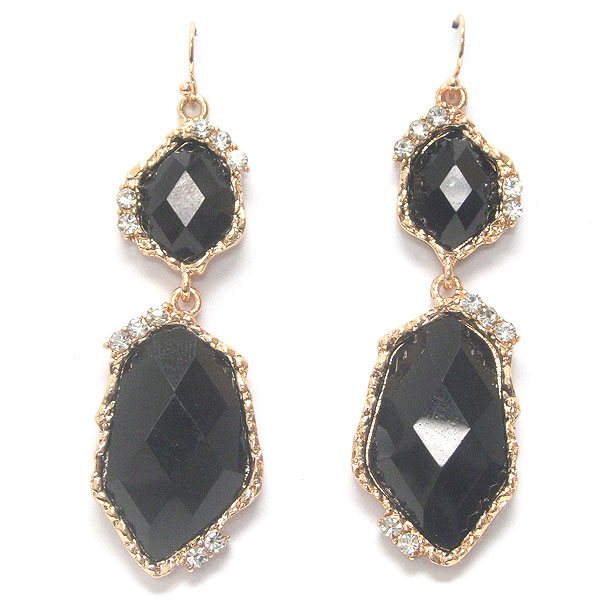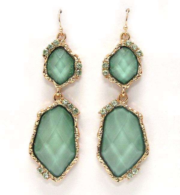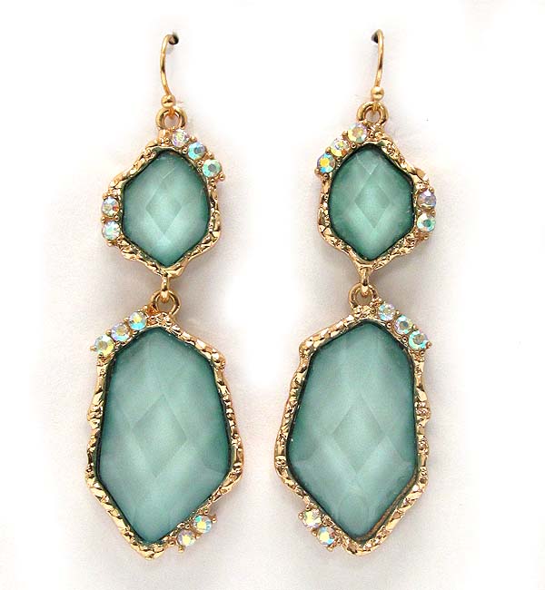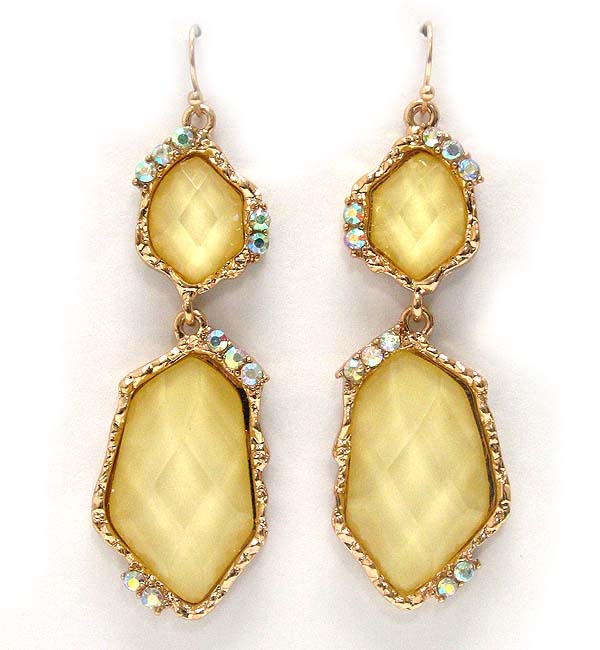 WHOLESALE CRYSTAL METAL TEXTERED WITH TWO GLASS STONE DROP EARRING 388131