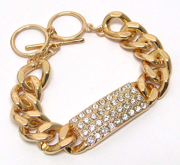 Crystal metal plate thick chain toggle bracelet