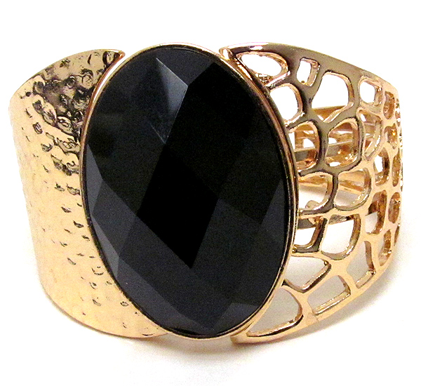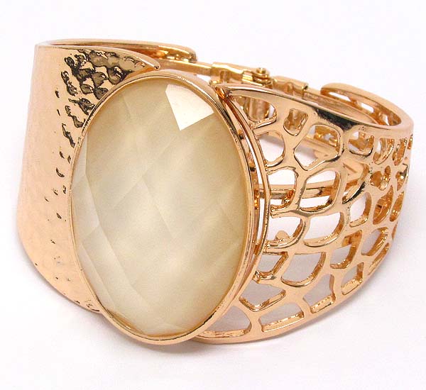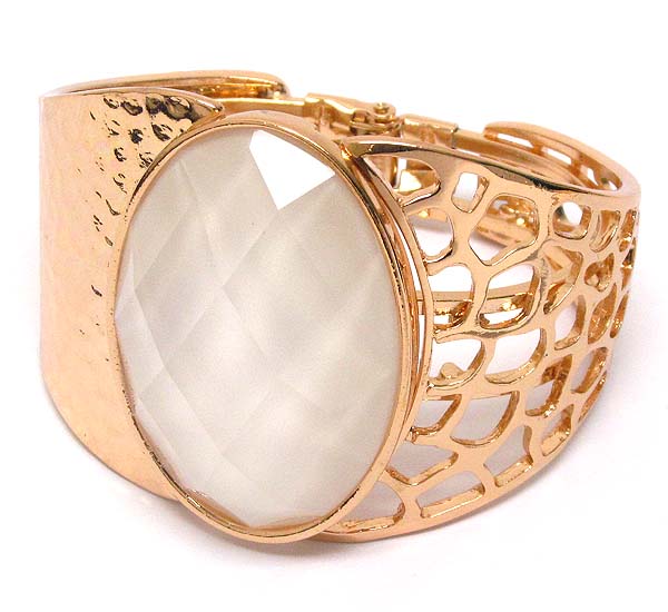 Oval glass stone hammered metal hinge bangle