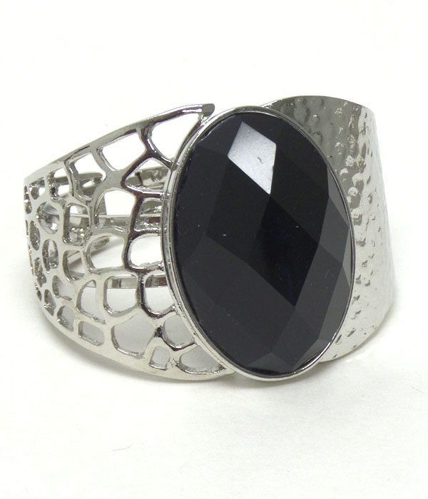 WHOLESALE OVAL GLASS STONE HAMMERED METAL HINGE BANGLE 388411