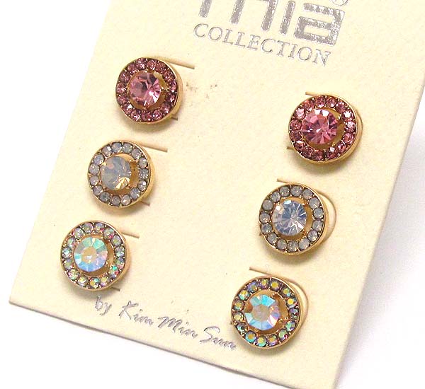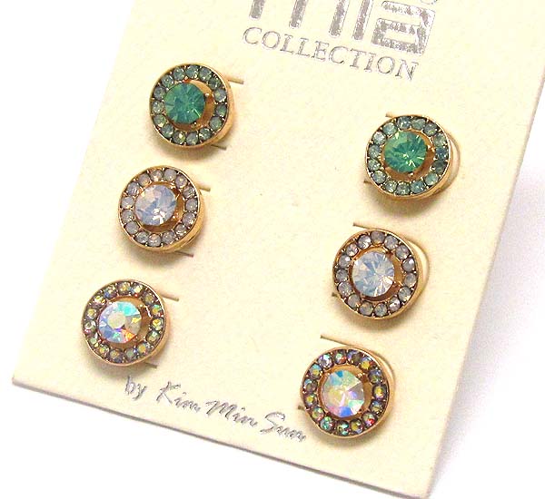 WHOLESALE CRYSTAL ROUND STUD EARRING SET OF 3 388427