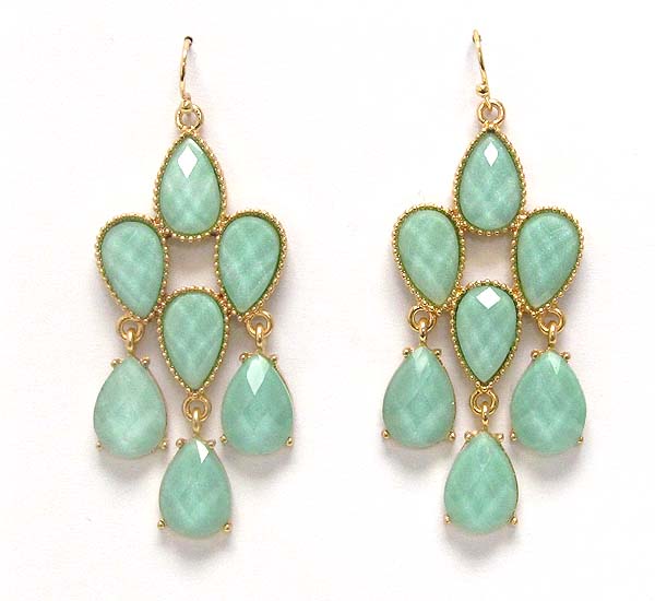 Metal and glass stone tear drop pattern drop earring