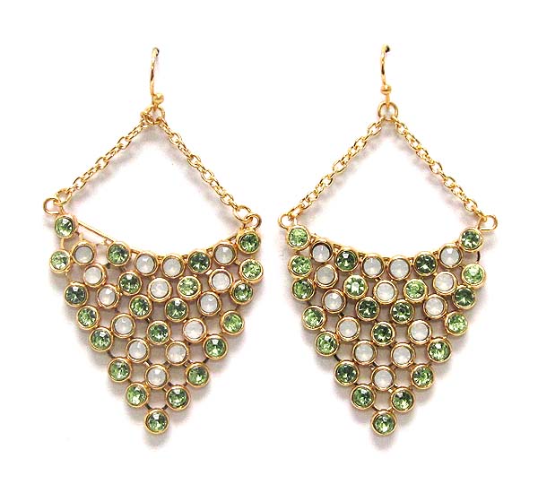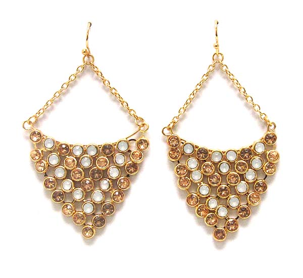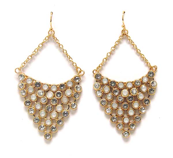 WHOLESALE CRYSTAL METAL MESH TRIANGLE DROP CHAIN EARRING 388493