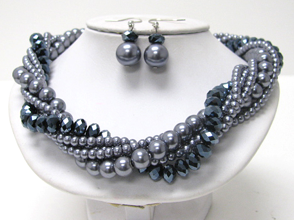 Multi size pearl with crystal glass twist layers drop necklace earring set