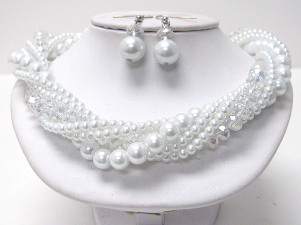 WHOLESALE MULTI SIZE PEARL WITH CRYSTAL GLASS TWIST LAYERS DROP NECKLACE EARRING SET 388600