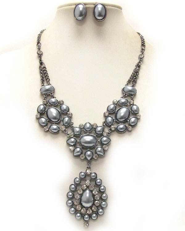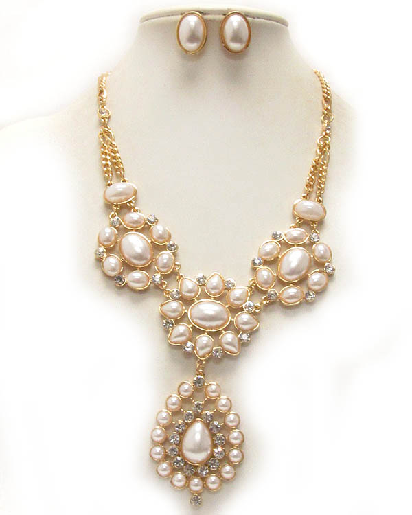 WHOLESALE CRYSTAL AND MULTI SIZE PEARL ON OVAL FLOWERS DROP PARTY NECKLACE EARRING SET 388601