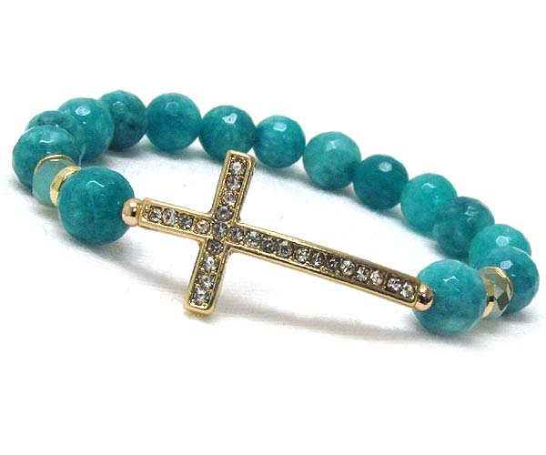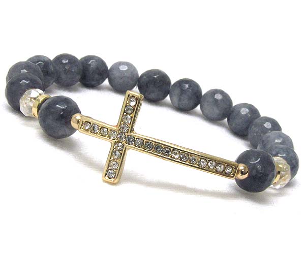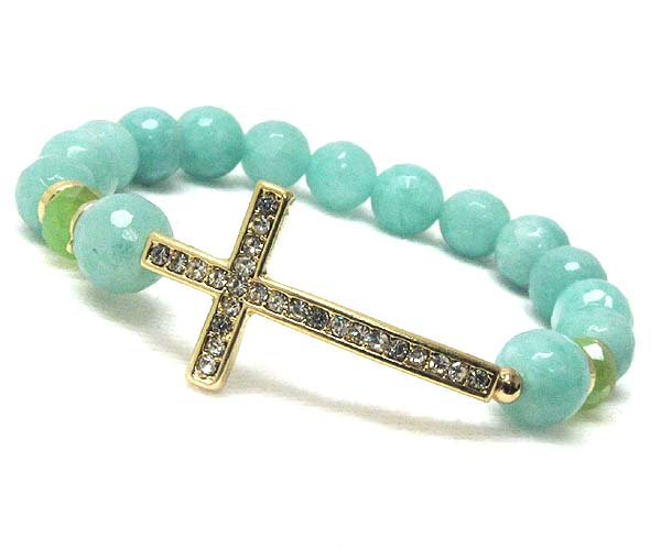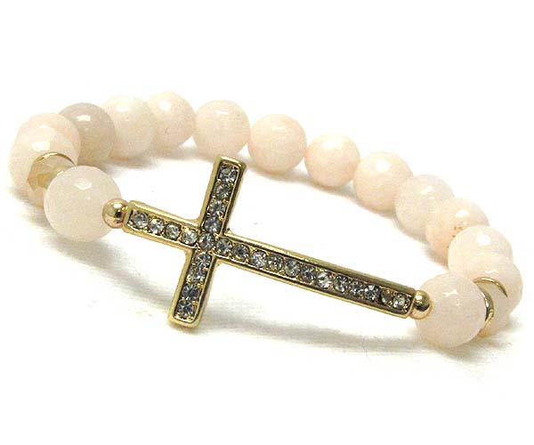 Crystal leaned cross with multi acryl ball and crystal glass stretch bracelet