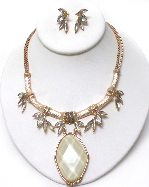 Bamboo inspired glass stone necklace earring set