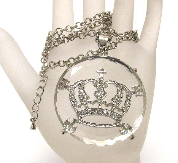 Clear glass with crystal metal crown drop long chain necklace
