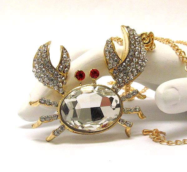 WHOLESALE MULTI CRYSTAL AND FACET GLASS BODY DECO SEA CRAB LONG NECKLACE 388891