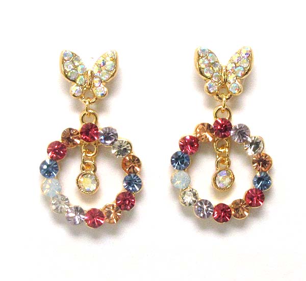 WHOLESALE CRYSTAL BUTTERFLY AND HOOP DROP EARRING - HOOPS 388934