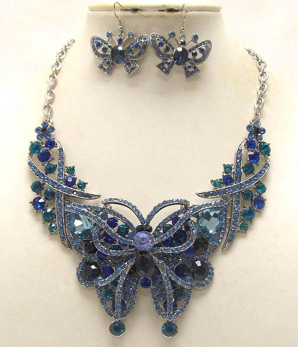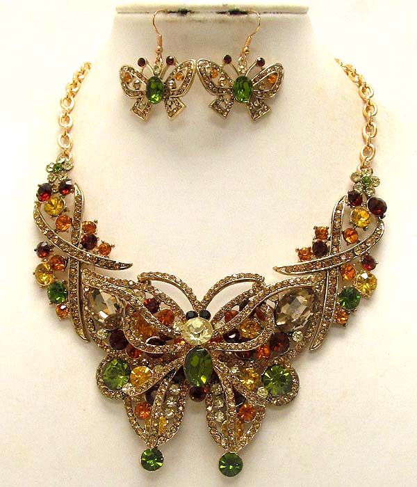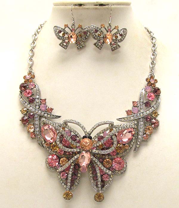 WHOLESALE LUXURY CLASS VICTORIAN STYLE AUSTRIAN CRYSTAL BUTTERFLY PARTY NECKLACE AND EARRING SET 389168