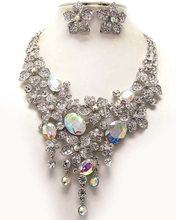 Luxury class victorian style austrian crystal flower party necklace and earring set